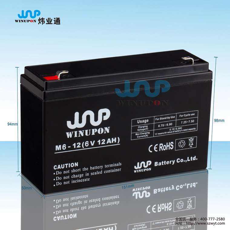 | 規(guī)格型號 | 6V12AH | 外形尺寸(±2mm) | 約重1.60KG | |||
